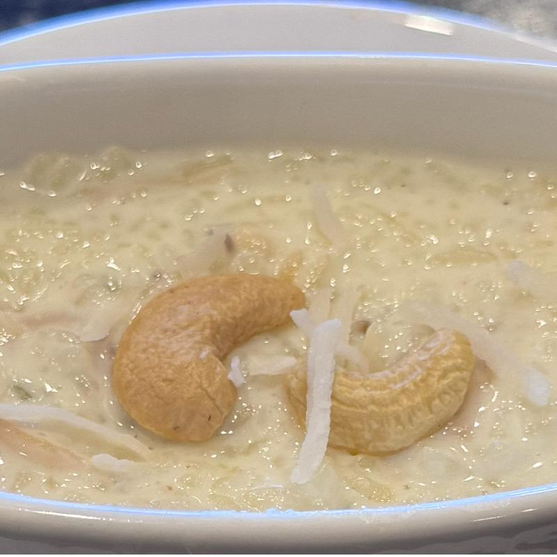 A classic rice pudding made by slow-cooking fragrant basmati rice in creamy milk, lightly sweetened and infused with cardamom. Garnished with saffron and toasted nuts for a rich, comforting finish.