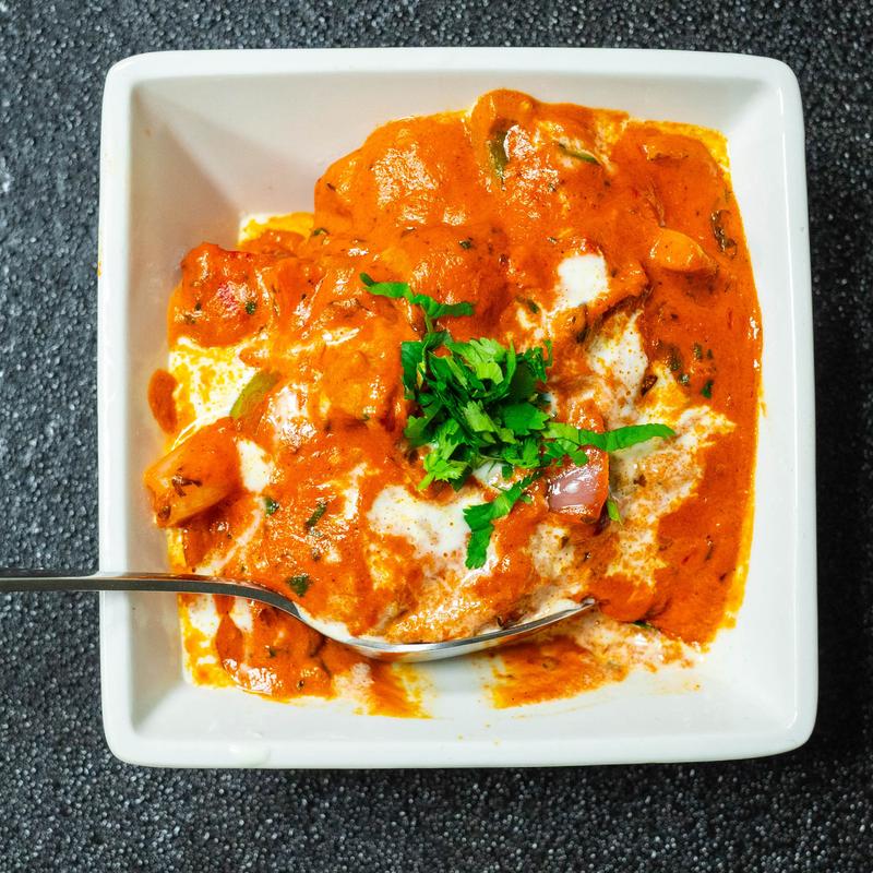 Delhi style - bone in chicken/chicken chunks, gravy (cream, cashew and tomato based)