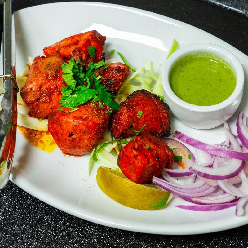 Tandoori chicken, malai chicken tikka, mint chicken tikka, tandoori shrimp, lamb seekh kebab